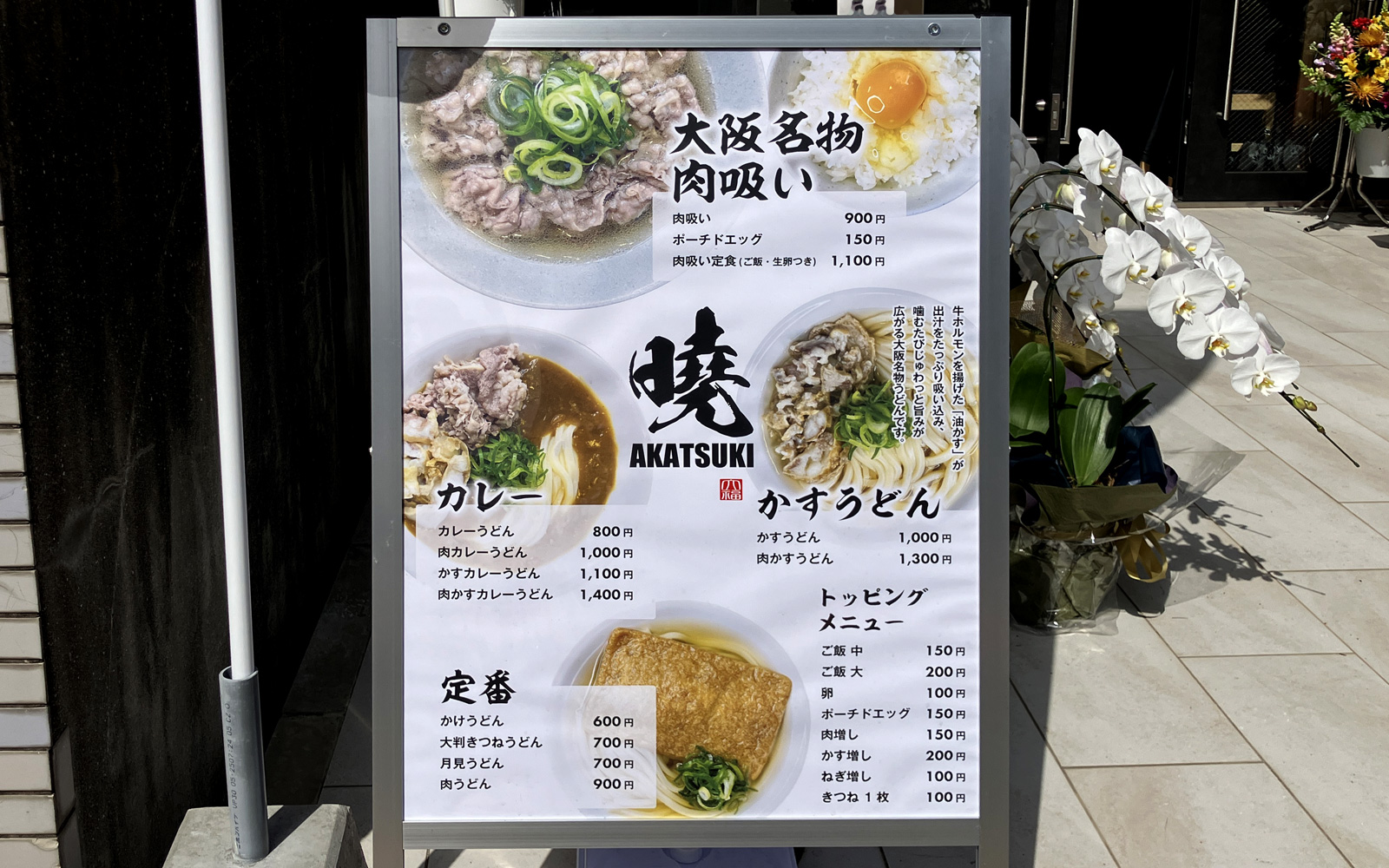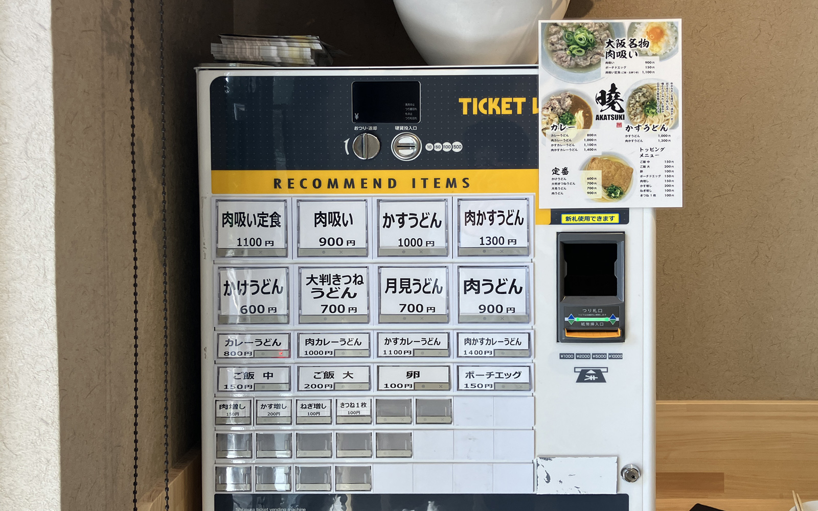 看板メニューの「肉吸い・かすうどん」の他にも「カレーうどん」や「きつねうどん」なども提供されていました。