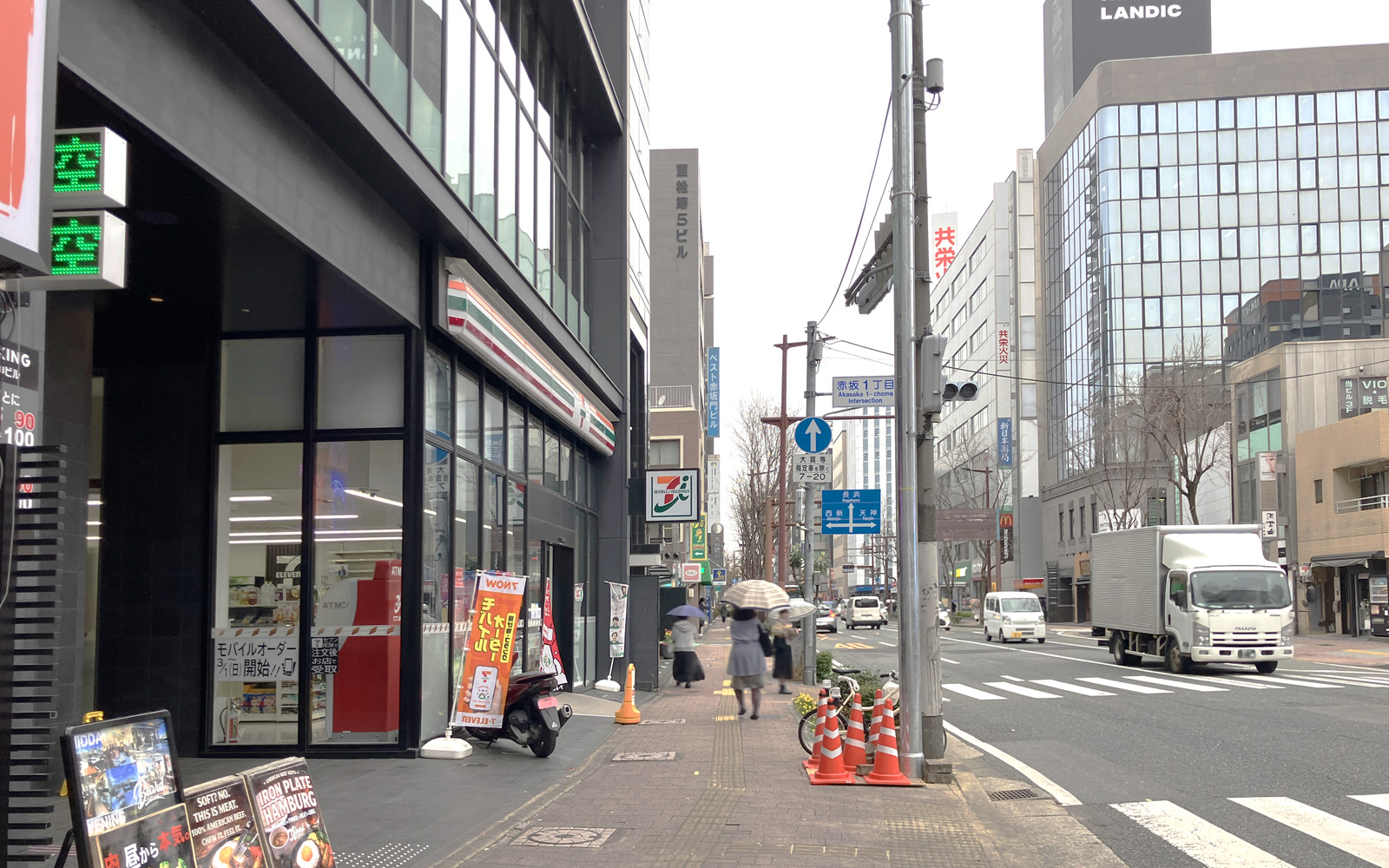 ↓大正通り「赤坂1丁目」交差点、赤坂駅方面