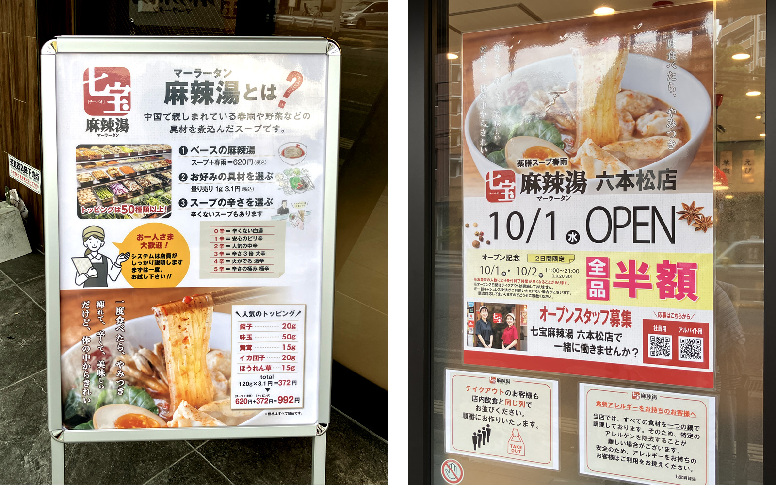 2025年10月1日 (水) 、福岡市中央区・六本松に、「七宝麻辣湯 (チーパオマーラータン) 六本松店」がオープン。