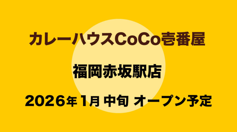 2026年1月中旬、福岡市中央区・大名2丁目に、「カレーハウス CoCo壱番屋」がオープンするそうです。