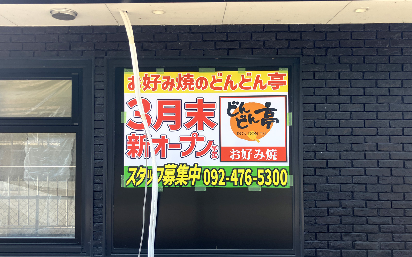 2026年3月末、福岡市博多区・西月隈4丁目に、お好み焼き専門店「どんどん亭 月隈店」がオープンするそうです。