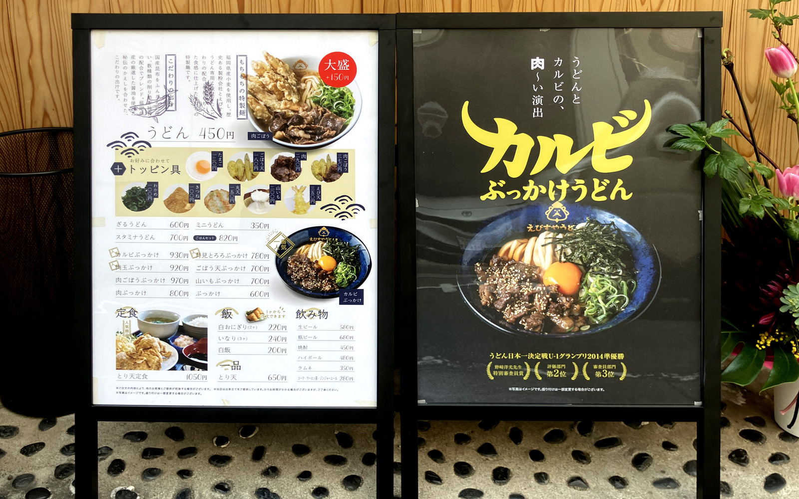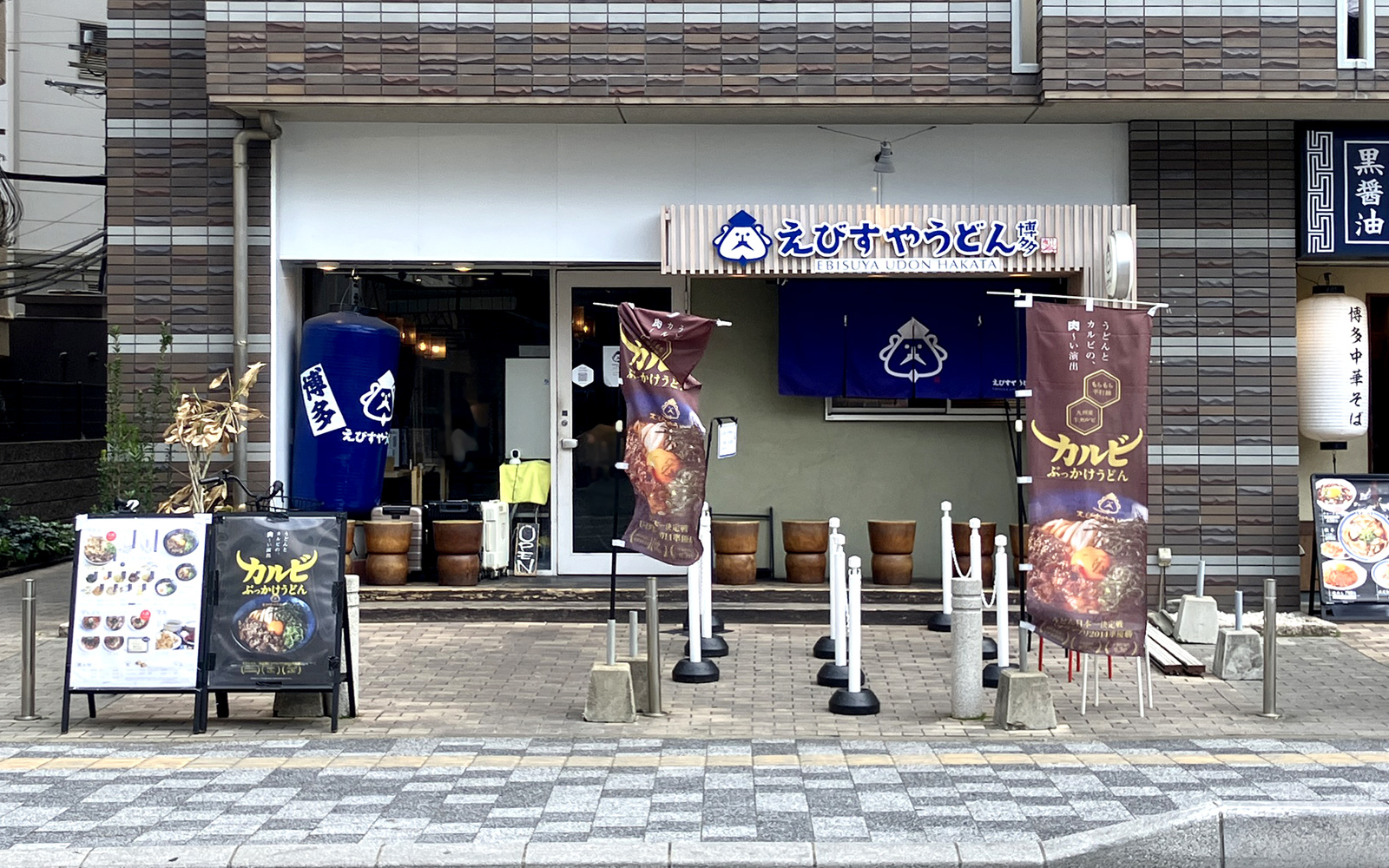博多区・住吉にある、行列のできる人気店「えびすやうどん博多」の直営2号店とのこと。