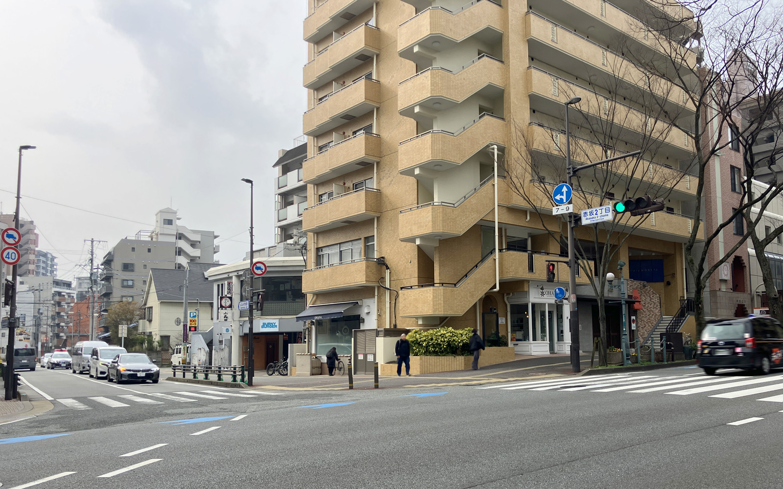 場所は、けやき通りの「赤坂2丁目」交差点から「はなみずき通り」へ進み、