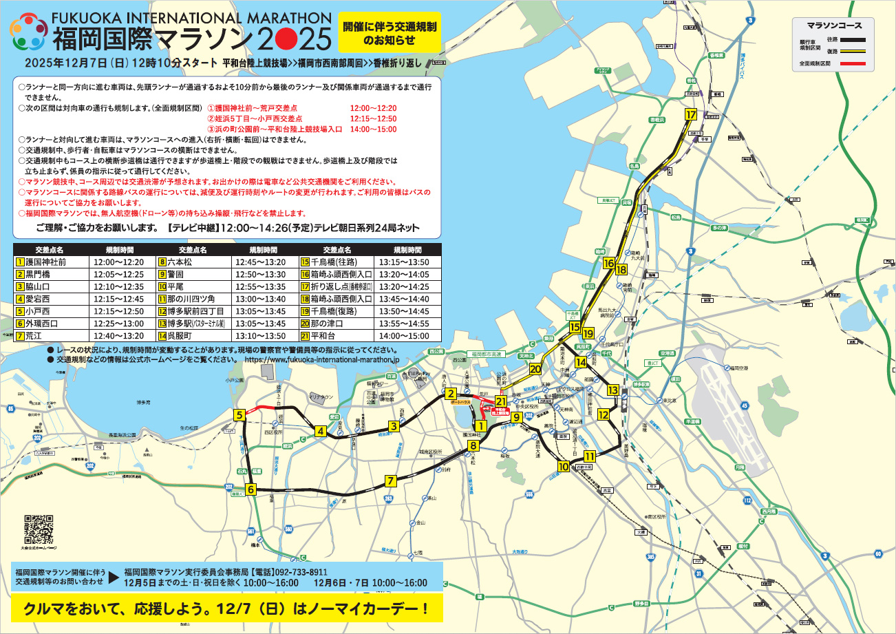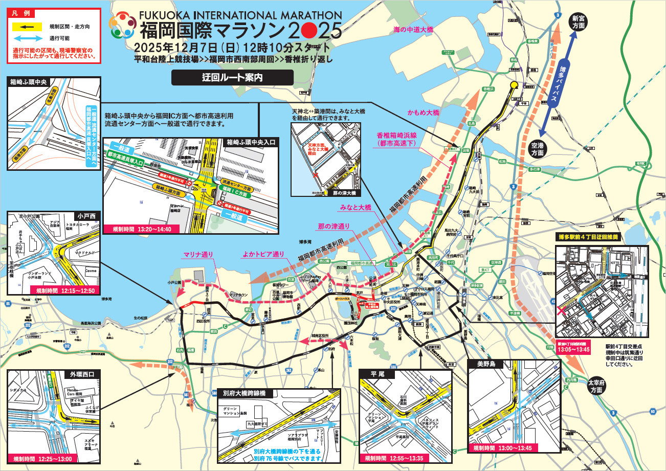 ◆拡大マップは「福岡県警察 福岡国際マラソン2025 交通規制のお知らせ」をご確認ください。
