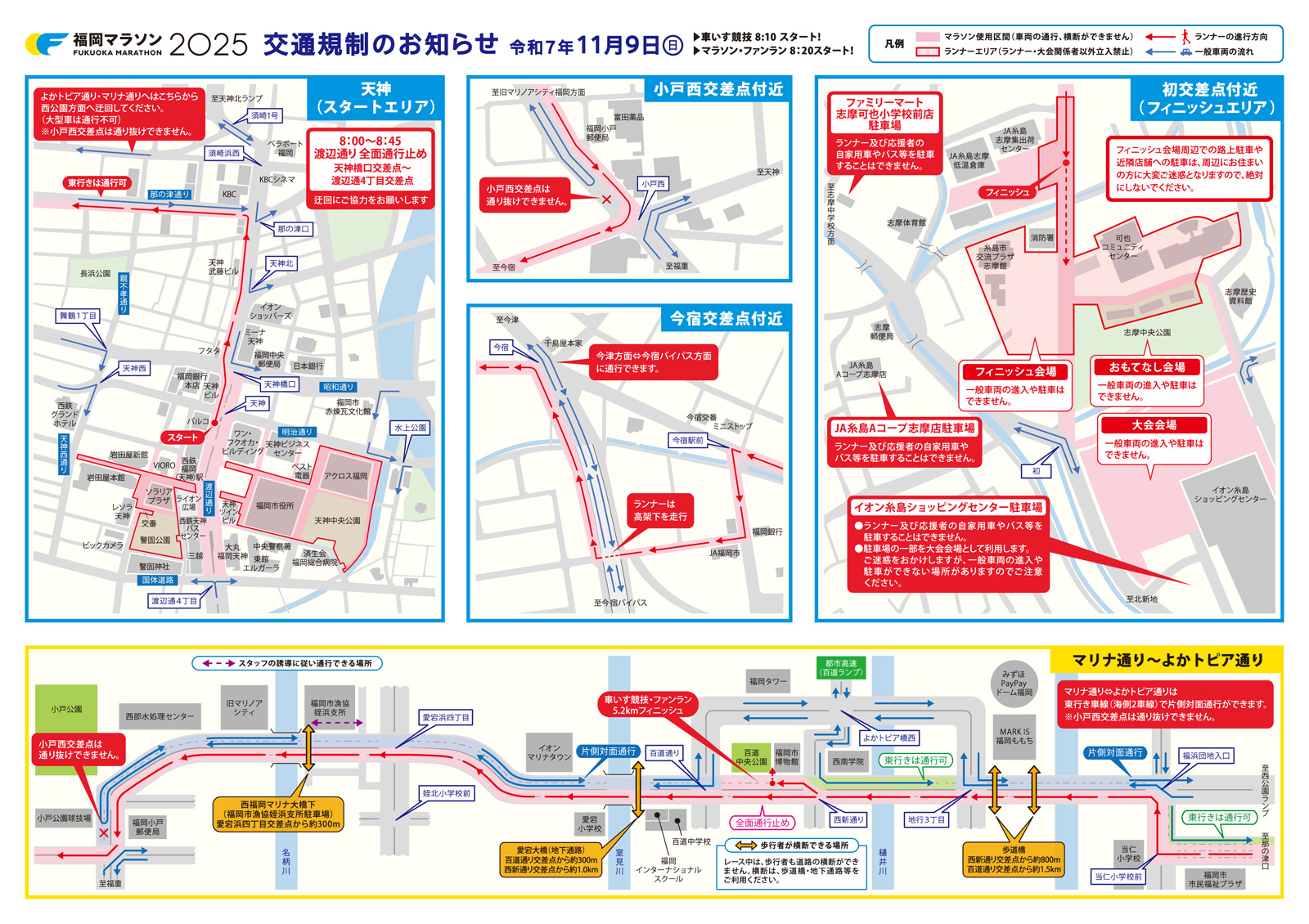◆拡大マップは「福岡マラソン2025 交通規制のお知らせ」をご確認ください。
