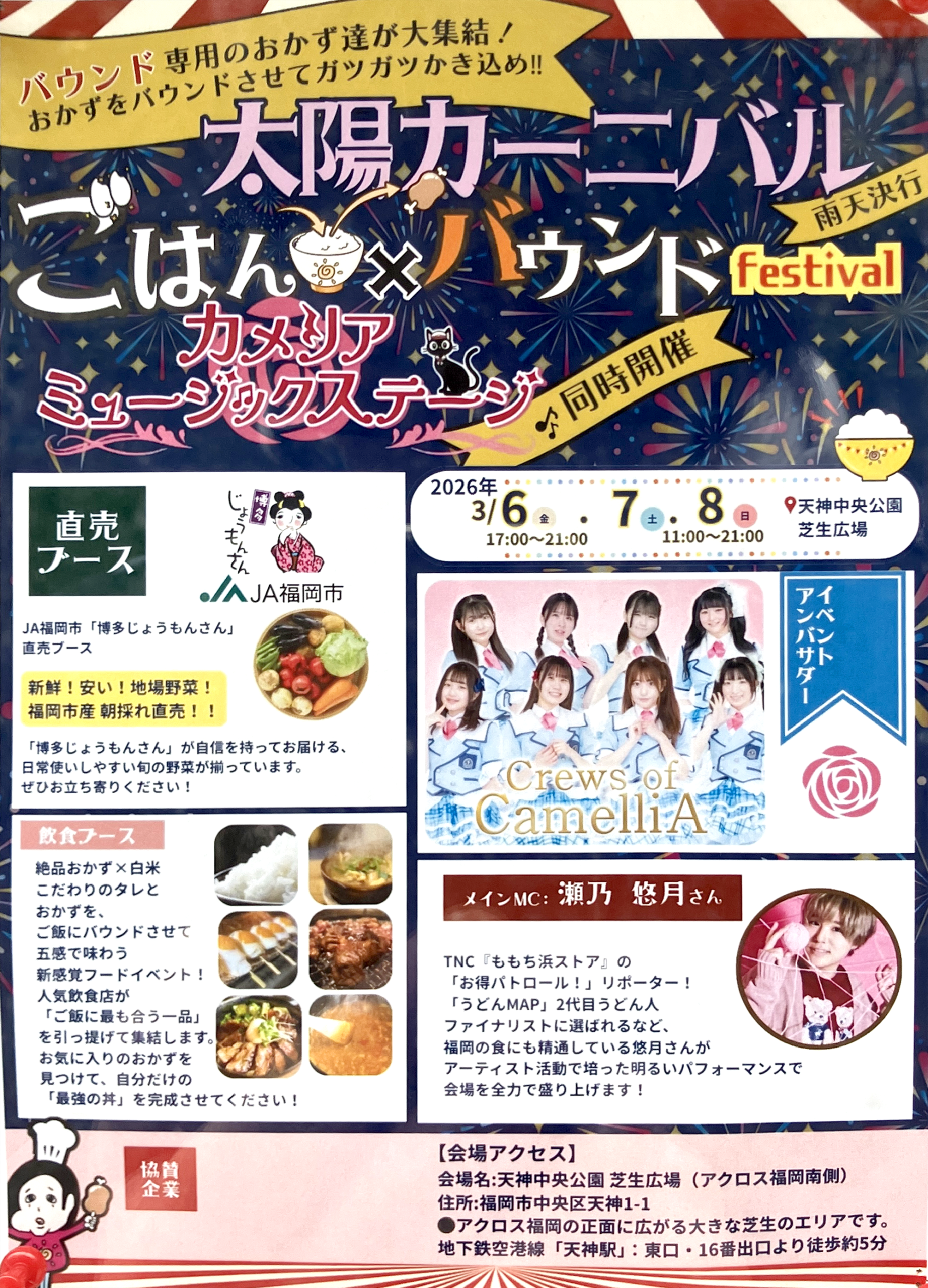 太陽カーニバル/ごはん×バウンドFestival/カメリアミュージックステージ の開催場所はこちら↓