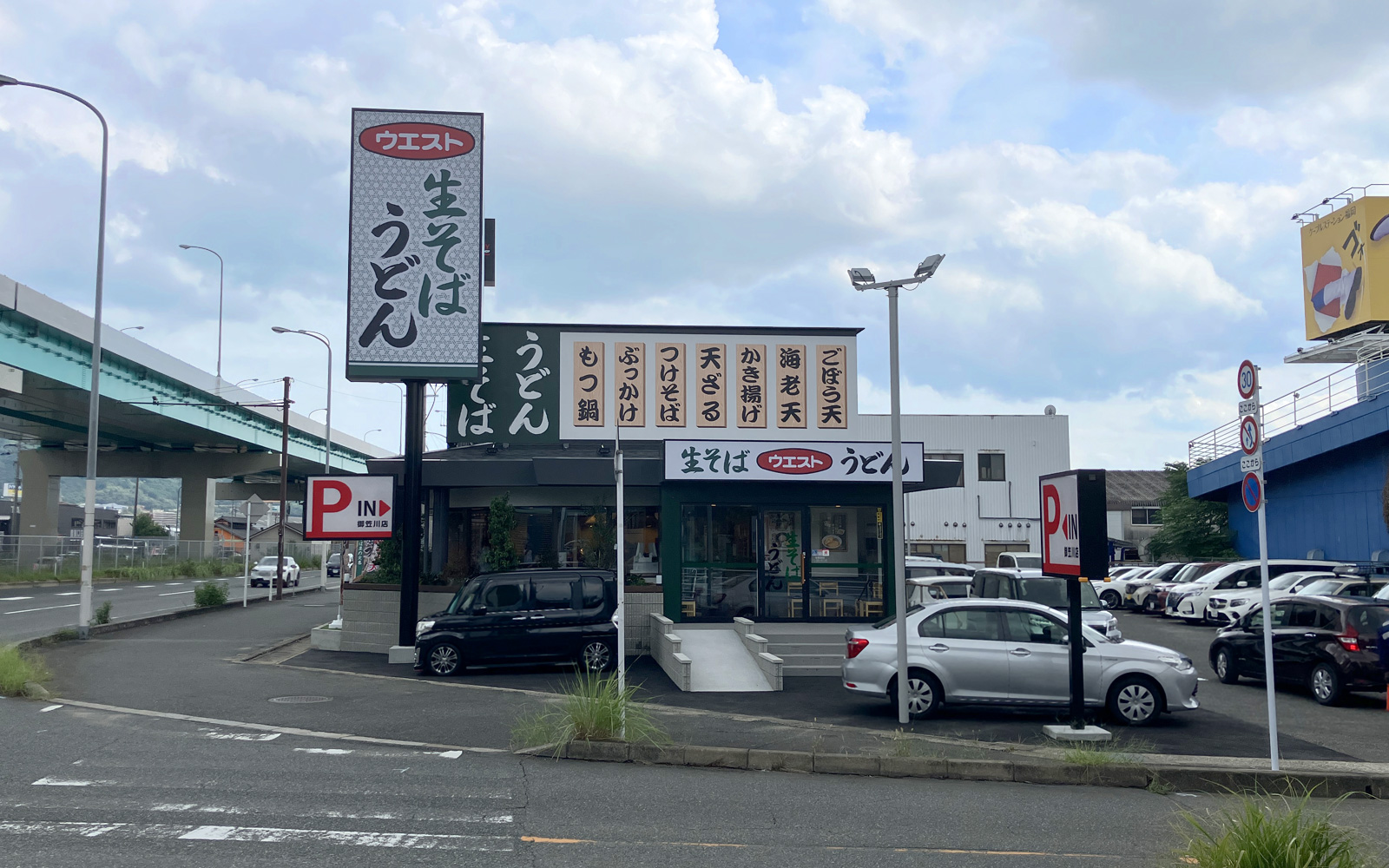 ウエスト自慢のうどんと生そばの店。店内製麺された「生そば」は「3玉まで同一価格」で楽しめます。そばつゆは毎日店舗で手作り。「熟成本かえし」がそばの香りと旨味を引き出します。