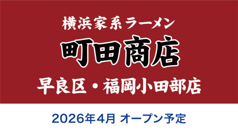 2026年4月、福岡市早良区・小田部4丁目に、横浜家系ラーメン「町田商店 福岡小田部店」がオープンするそうです。