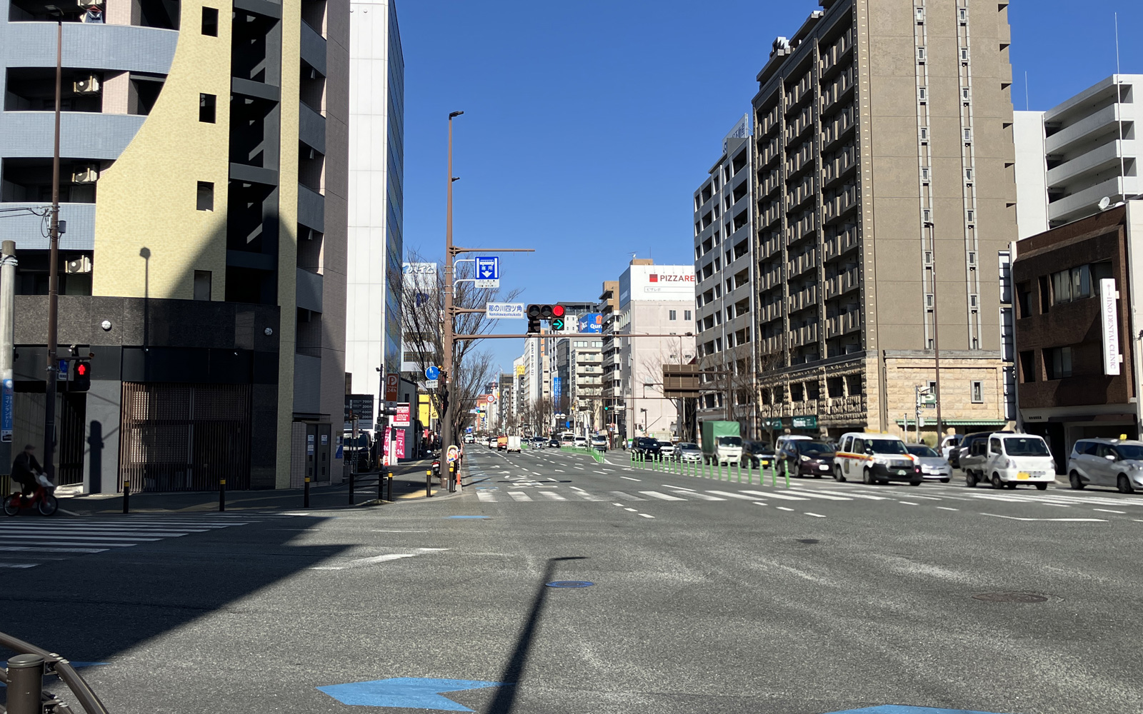 場所は、日赤通り「那の川四つ角」交差点付近です。
