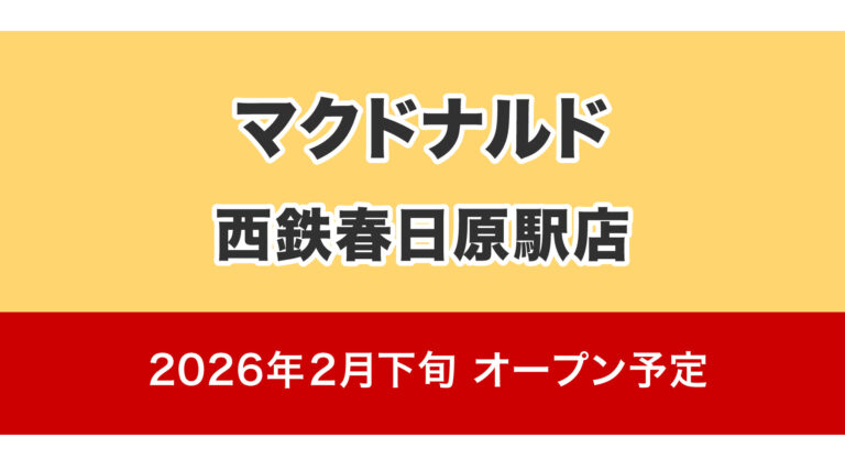 2026年2月下旬、西鉄・春日原駅に「マクドナルド 西鉄春日原駅店」がオープンするそうです。
