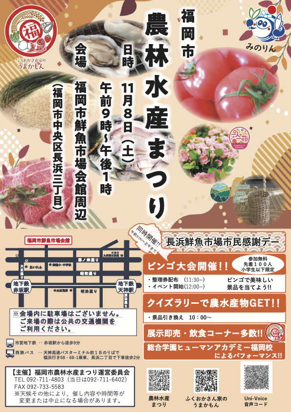 福岡市鮮魚市場会館で『令和7年度 福岡市農林水産まつり』が開催されます。