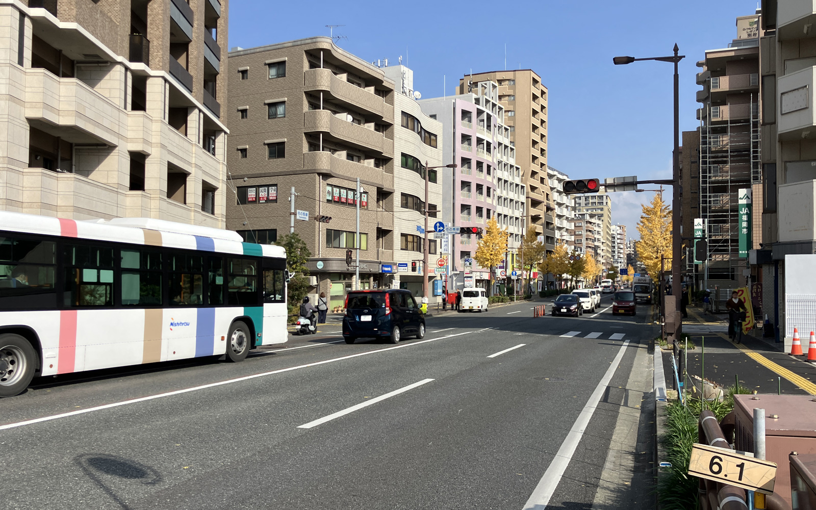 場所は、県道202号線(別府橋通り)「弓の馬場」交差点付近。