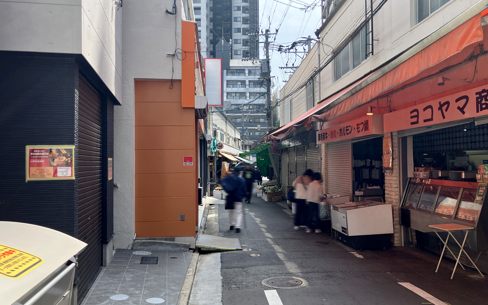 商店街から、マックスバリュの方へ抜ける路地。精肉店や八百屋さんがあるところです。