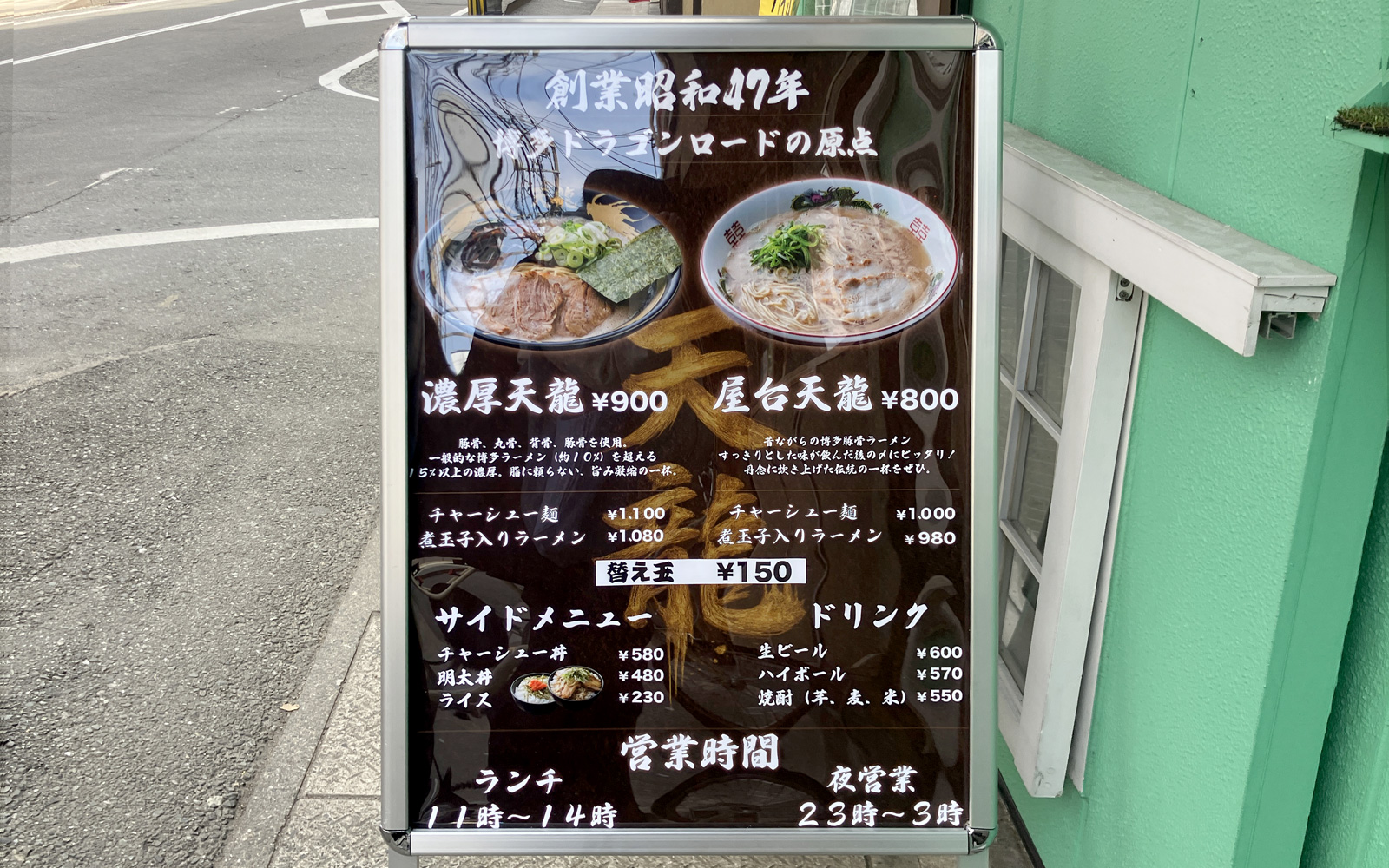 2026年3月9日 (月) 、福岡市中央区・春吉に「天龍ラーメン 春吉店」がオープンしていました。