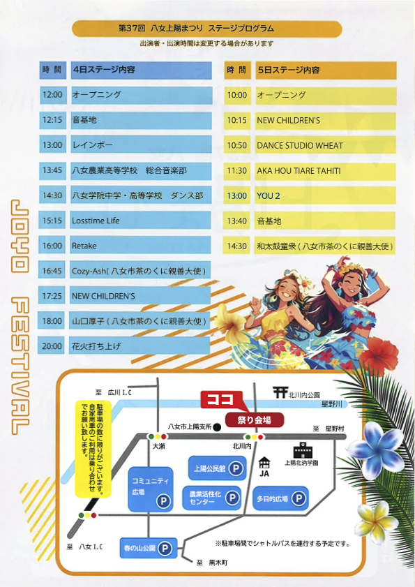 イベントの詳細については、上陽まつりのチラシをご確認ください。