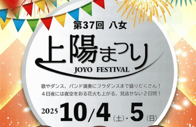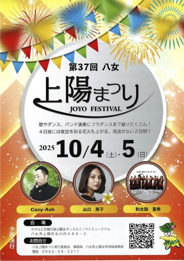 令和7年度、第37回八女上陽まつり今年度の八女上陽まつりは、地域の賑わいづくりを目的とし、昨…