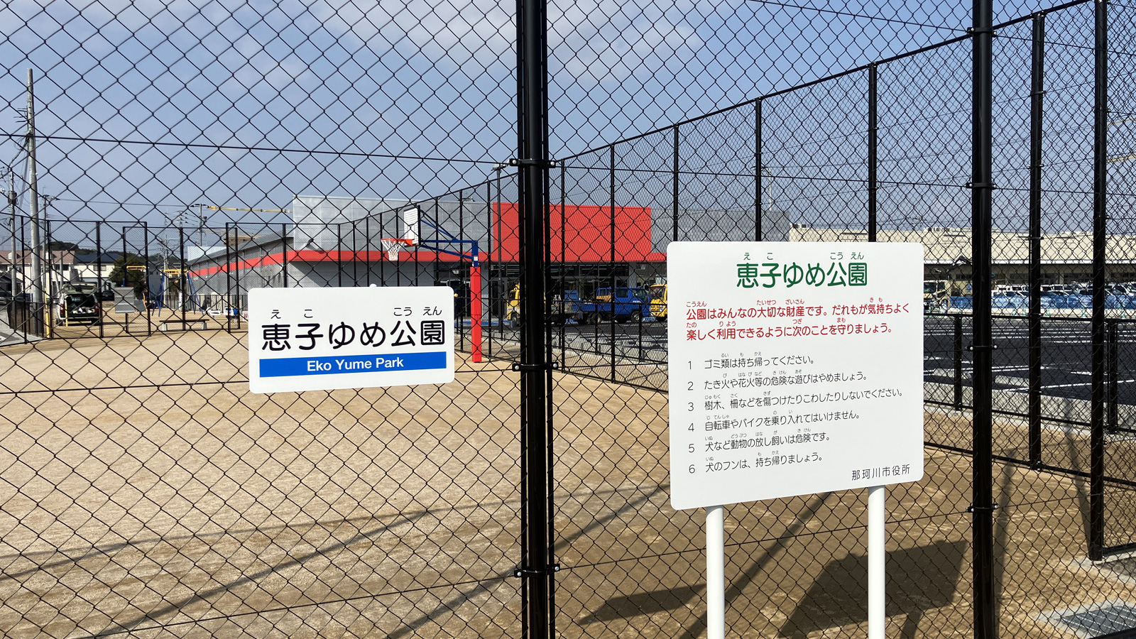 敷地の隣には「恵子ゆめ公園(那珂川市)」も新しく出来ていました。バスケットゴールやジップラインなどの楽しそうな遊具が設置されていました。